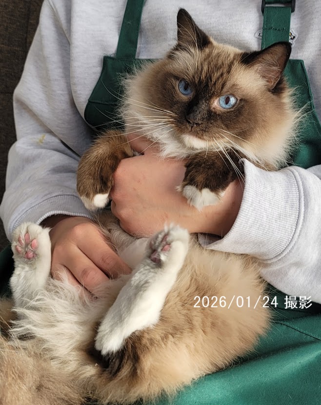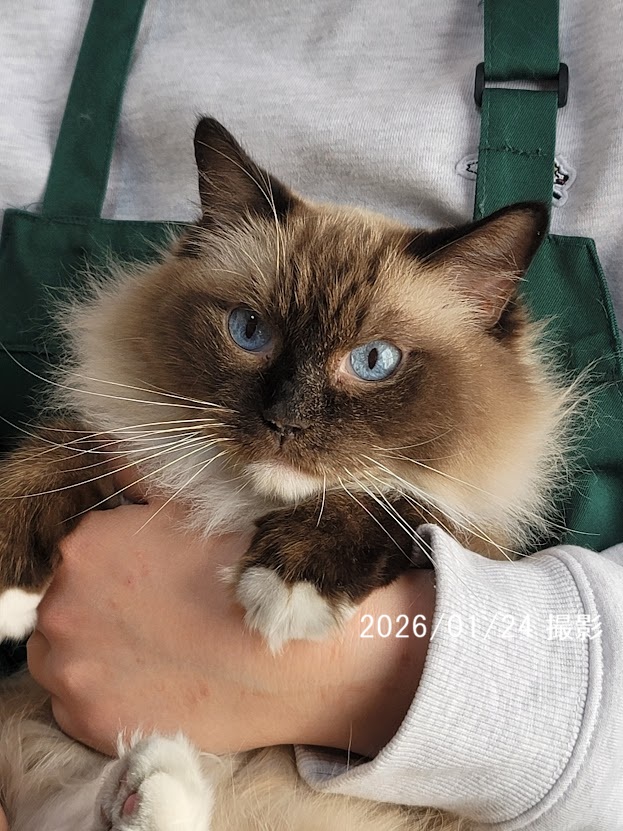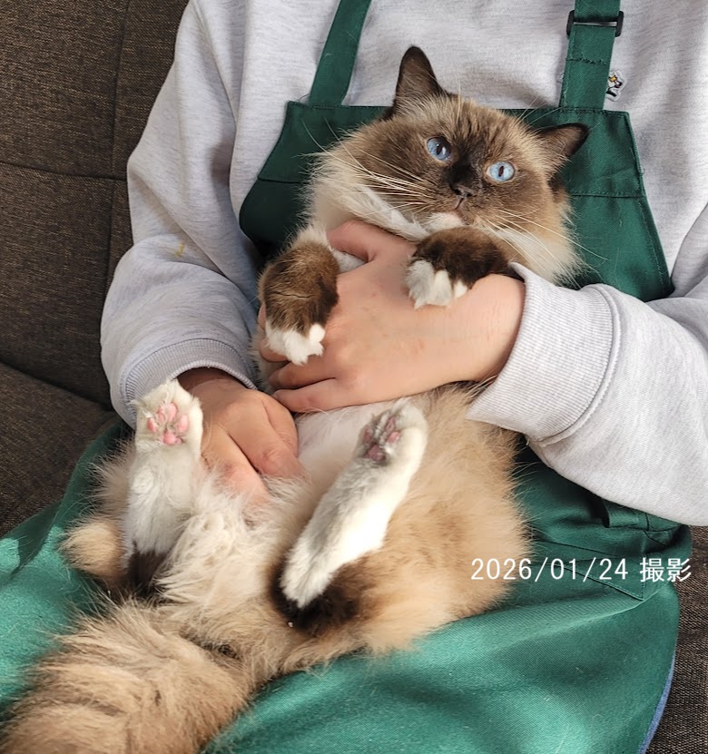 ふわふわの被毛が魅力的なラグドールの女の子です。